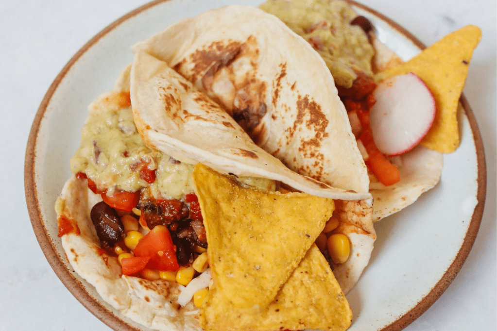- bean and rice burritos – canned black or refried beans, minute rice, tortillas, salsa