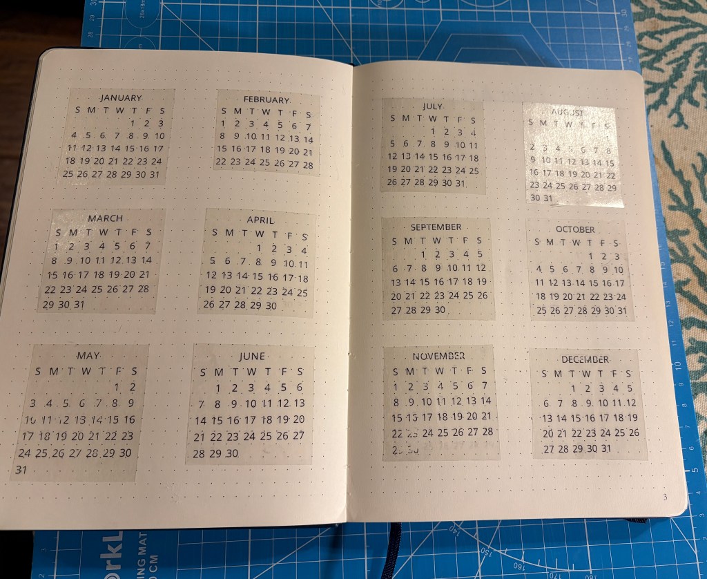 I also add a full year calendar. Last year I bought stickers from Etsy, which were a bit pricy and took a long time to ship, so this year I printed my own.